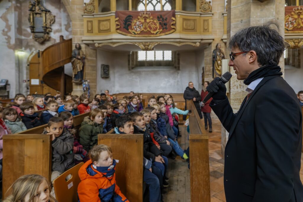 Am 14. Januar haben rund 1300 Grundschüler*innen den 343. Geburtstag von Gottfried Silbermann gefeiert. In den Kirchen von Zöblitz, Freiberg, Schweikershain, Reichenbach, Glauchau, Bad Lausick und Reinhardtsgrimma, in denen Silbermann-Orgeln zu finden sind, haben die Kantorinnen und Kantoren den Grundschulklassen ein ganz besonderes Konzert mit Werken von Johann Sebastian Bach und bekannten Melodien aus Kinderfilmen präsentiert. Die Kinder haben aus vollen Kehlen „Zum Geburtstag, lieber Gottfried, zu Geburtstag viel Glück“ auf Deutsch und auf Englisch gesungen und waren fasziniert vom charakteristischen „silbernen“ Orgelklang.